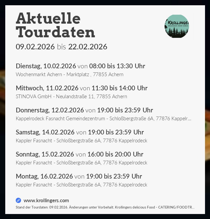 NEWS Veröffentlicht am 9. Oktober 20231. Februar 2026 von krollinger wir haben im spätjahr noch einige freie termine für euch Hier unsere neusten GOOGLE REZENSIONEN!! folgt uns auf Instagram, Facebook und Ihr seid immer auf dem neusten Stand!! Ihr plant eine Hochzeit, Firmenevent, Geburtstag oder einfach nur ein kleines Fest? Ihr seit nur ein -> KLICK<- entfernt ein kleiner auszug an firmen für die wir schon arbeiten durften –> KLICK<– Ihr findet uns auch auf http://www.foodtrucks-deutschland.de